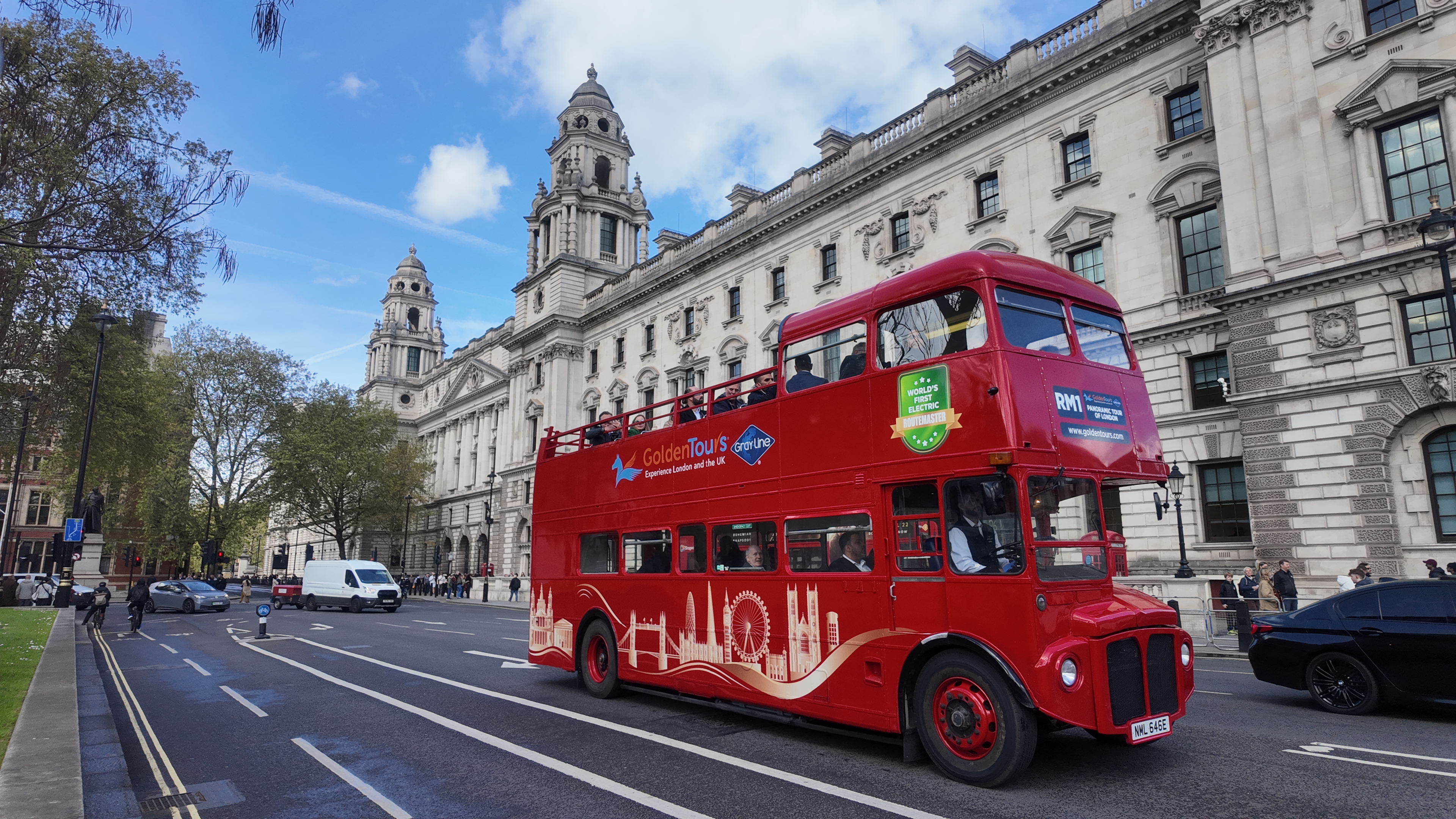- 1-hour tour of London on an open-top Routemaster bus